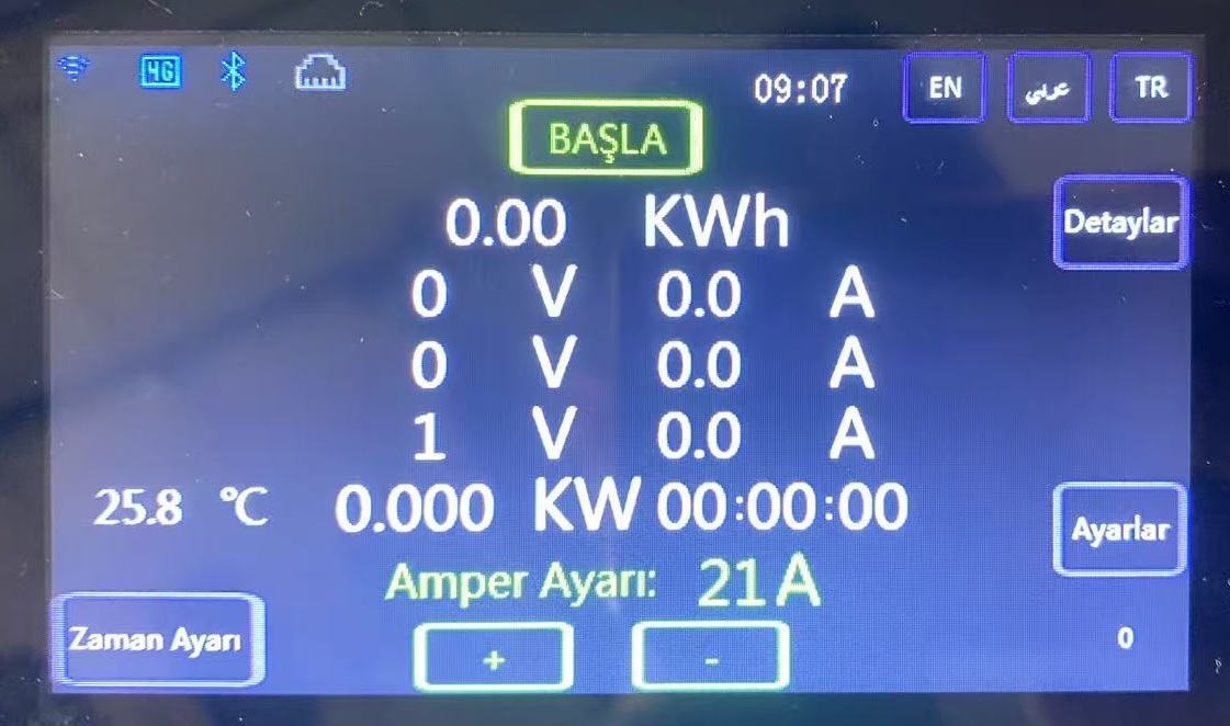 Şarjın amperinin ayarlanması/kontrolü (voltaj, akım, güç, enerji)