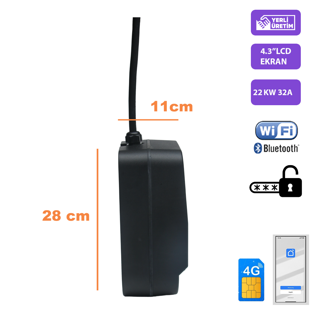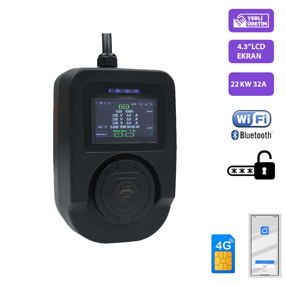 Amper ve durum göstergesi: Orta kısım LCD Ekran ve Mobil Uygulama aracılığıyla okunabilir