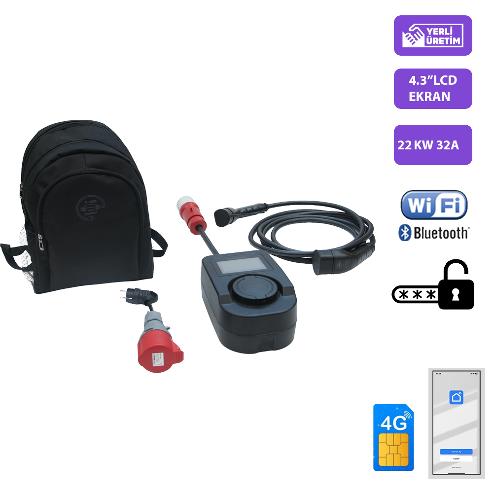 Maksimum şarj gücü 22 kW (32 A 3-faz)
