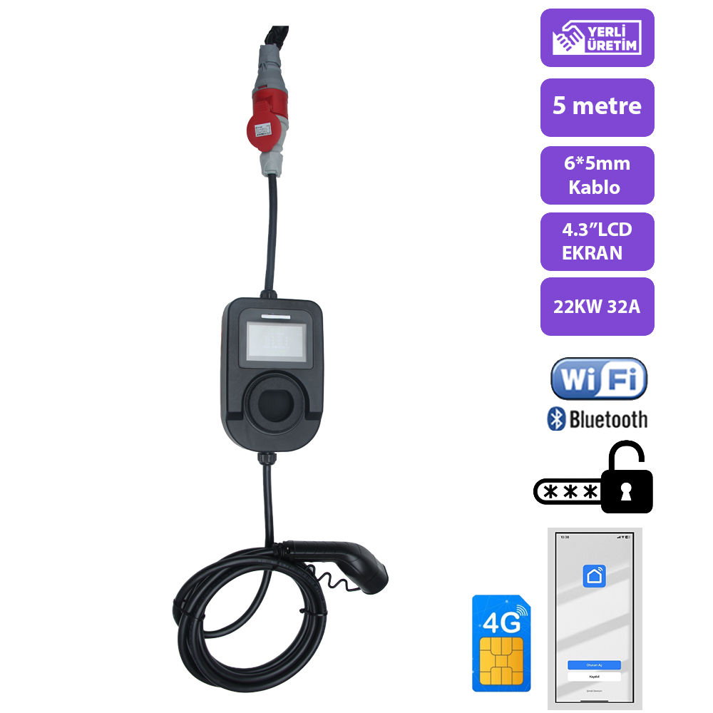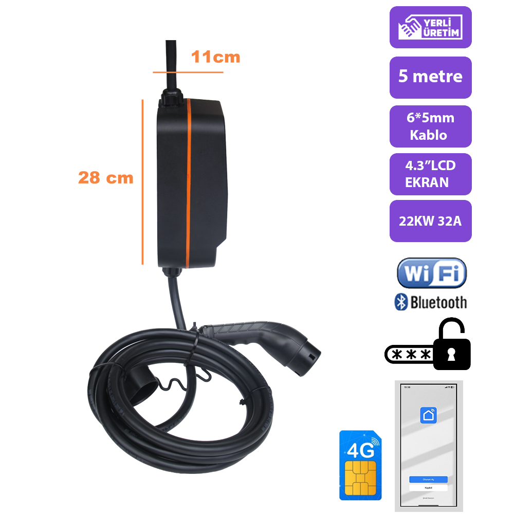 Maksimum şarj gücü 22 kW (32 A 3-faz)